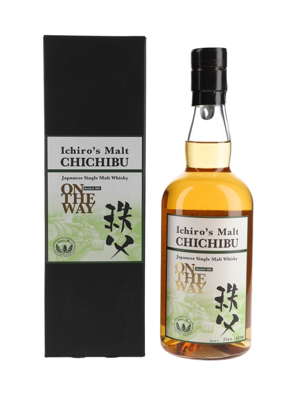 A bottle of Chichibu On The Way Japanese Single Malt Whisky bottled in 2015, part of a series charting the fledgling distillery's progress. This is a multi vintage vatting of whisky distilled at various times since the distillery opened in 2008, including some of its oldest. This was imported to UK by Number One Drinks Company Ltd.
