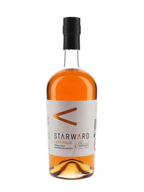 A bottle of Starward Left-Field Single Malt Australian Whisky, matured in French oak red wine barrels.