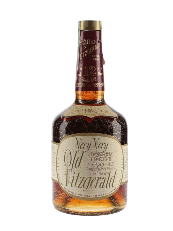 A bottle of Very Very Old Fitzgerald 12 Year Old Kentucky straight bourbon whiskey. We estimate this was bottled in the early 1980s.