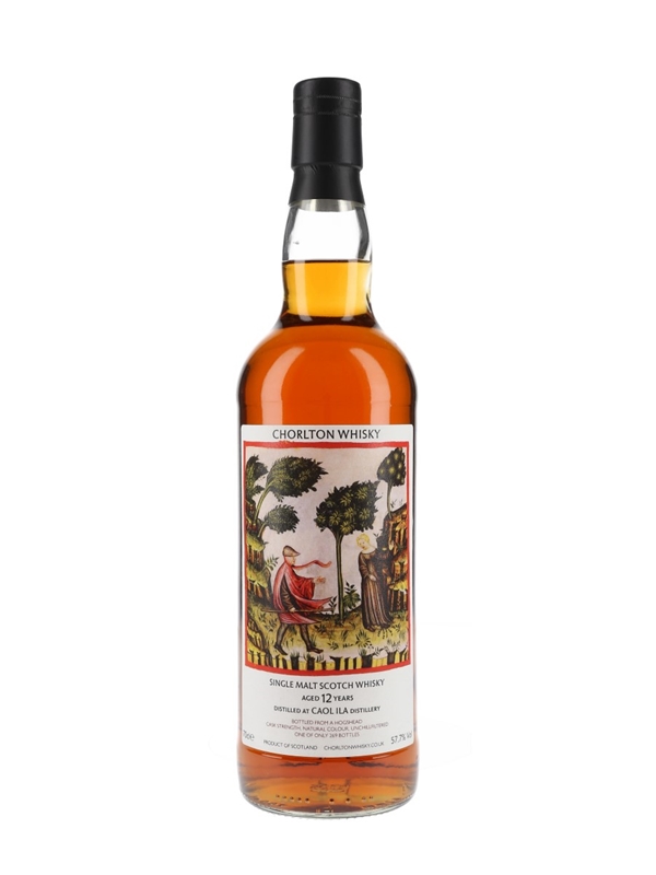 A bottle of Caol Ila 12 Year Old Single Malt Scotch Whisky. This was matured in a single hogshead and bottled by Chorlton Whisky.