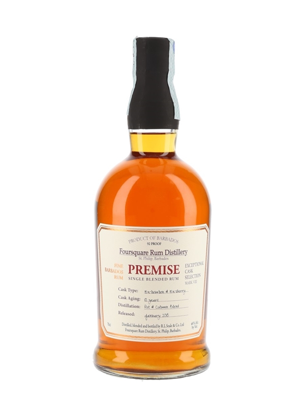 A bottle of Foursquare Premise 10 Year Old Single Blended Rum from Barbados. This is a blend of artisanal pot still and twin column continuous distillate, matured in ex-bourbon and ex-sherry casks for 10 years and released in January 2018 as part of the Exceptional Cask Selection series.