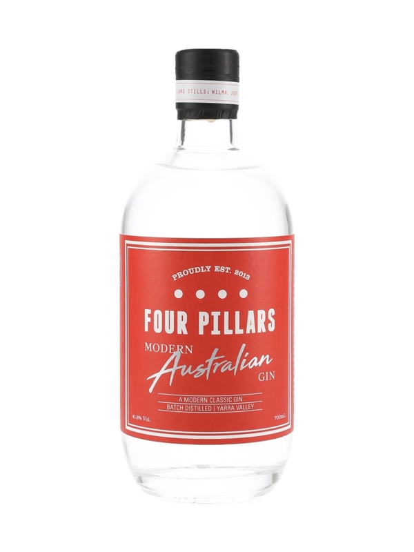 A bottle of Four Pillars Rare Dry Gin, produced in Australia.