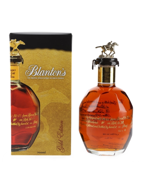 A bottle of Blanton's Gold Edition Kentucky Straight Bourbon Whiskey.