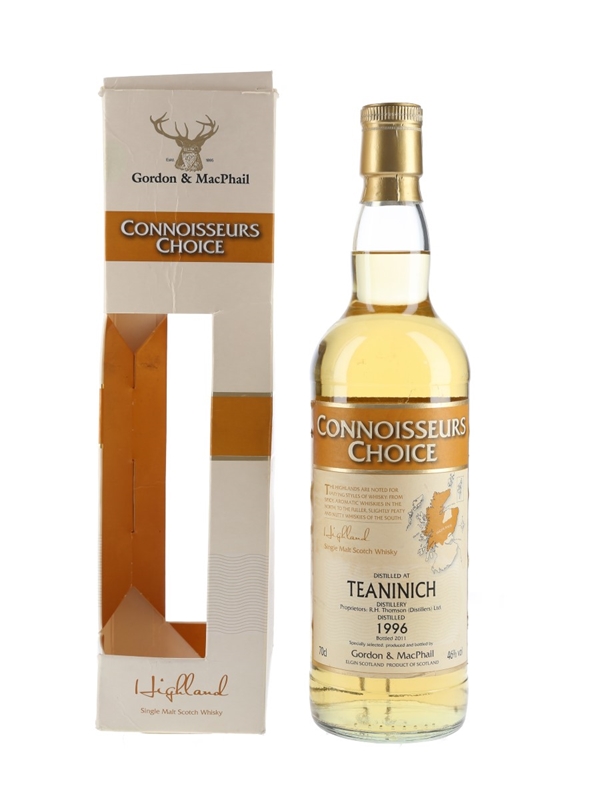A bottle Teaninich 1996 Single Malt Scotch Whisky. This was distilled in September 1996 and bottled in October 2011 by Gordon & MacPhail as part of the Connoisseurs Choice series.