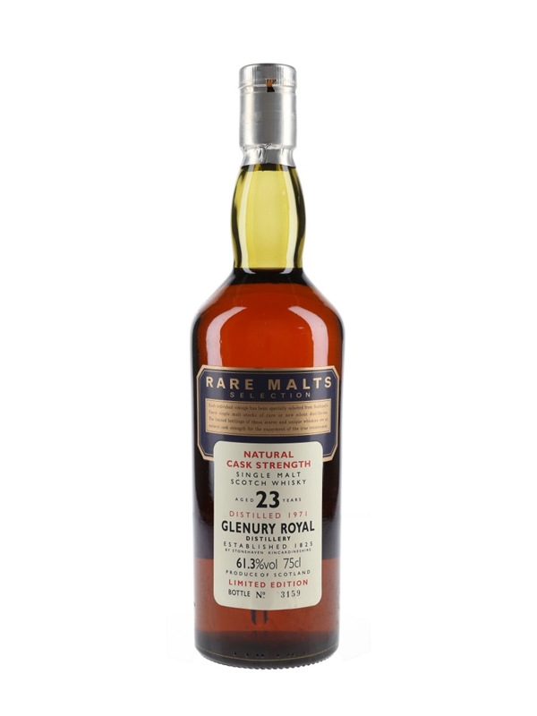 A 75cl bottle of Glenury Royal 23 Year Old. This was distilled in 1971 and bottled for Diageo's now-discontinued Rare Malts Selection.