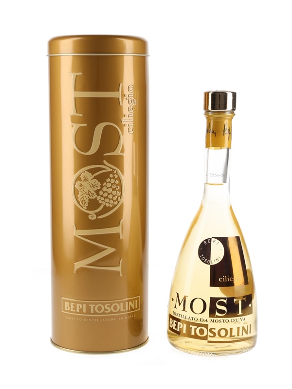 A 35cl bottle of Bepi Tosolini Most Ciliegio, a grape brandy produced and bottled in Povoletto, Italy. This was distilled from grape must and was matured in casks made from cherrywood.