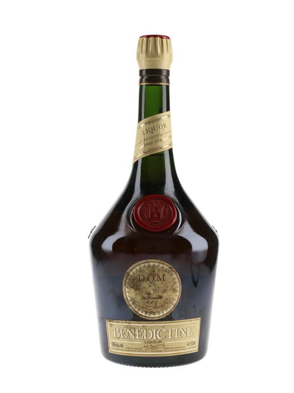 A litre bottle of Benedictine DOM liqueur produced in France.