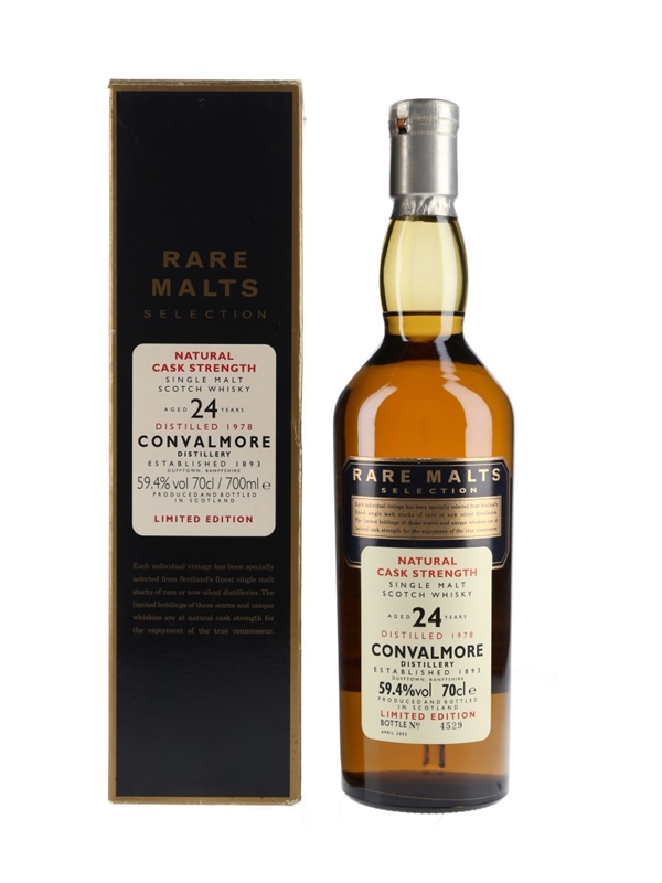 A limited edition bottle of Convalmore 24 Year Old Single Malt Scotch Whisky. This was distilled in 1978 and bottled in April 2003 for Diageo's now-discontinued Rare Malts Selection.