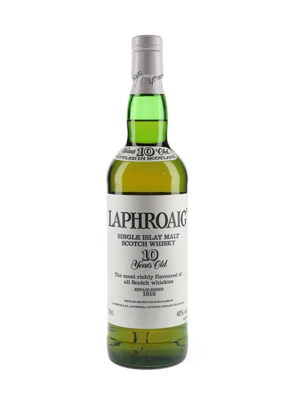 A bottle of Laphroaig 10 Year Old Single Islay Malt Scotch Whisky. We estimate this was bottled in the 1990s.