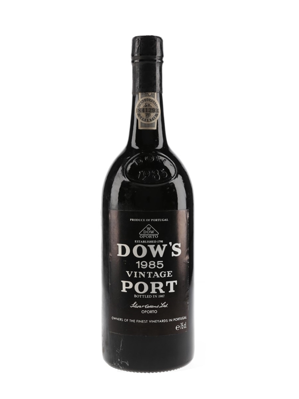 A bottle of Dow's Vintage Port, produced in 1985 and bottled in 1987.