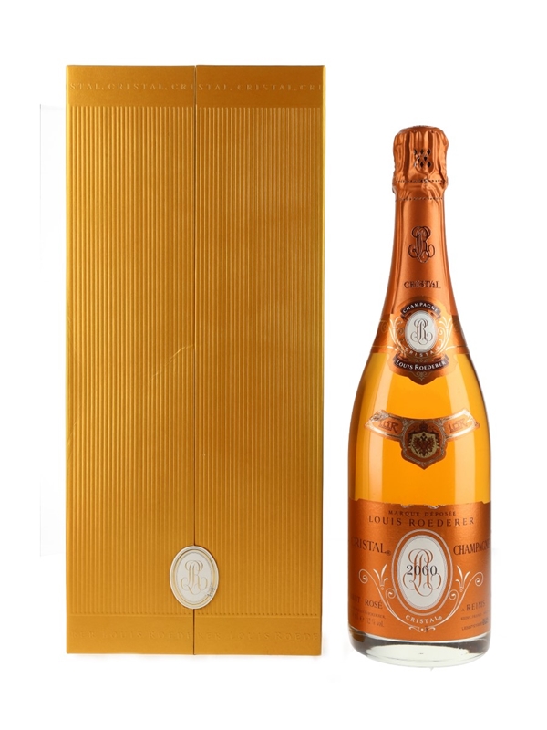 A bottle of Louis Roederer Cristal Rosé from the 2000 vintage.