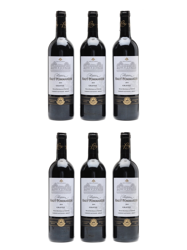 A case of six bottles of 2014 Château Haut-Pommarède Grand vin de Graves from Bordeaux.