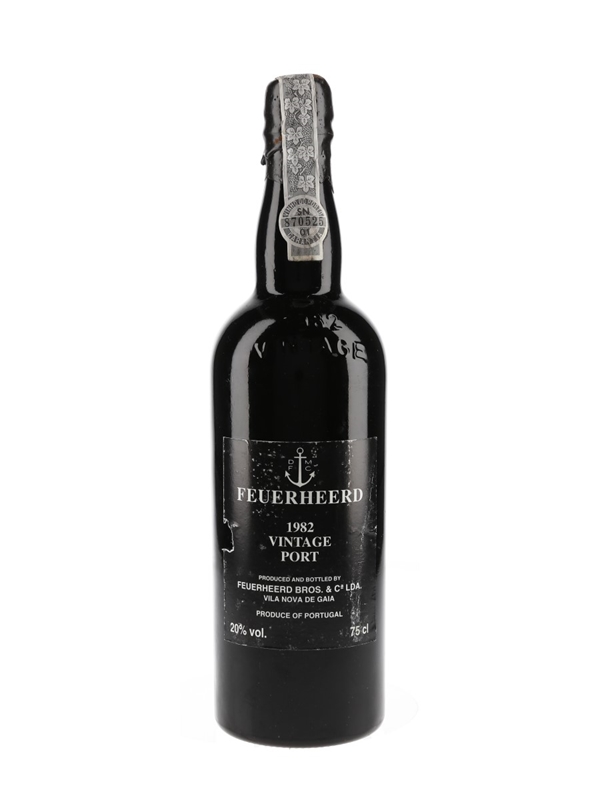 A bottle of Feuerheerd 1982 Vintage Port from Portugal, from an extremely hot, early-picked vintage, which was declared by only a small number of shippers.