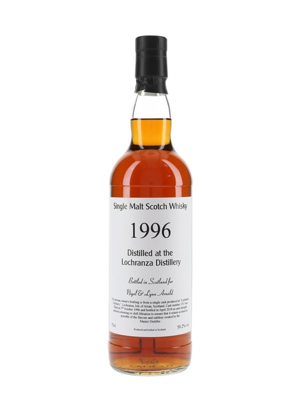 A private cask bottling of 1996 vintage single malt whisky produced at Lochranza distillery, Isle of Arran. This was distilled on 7 October 1996, matured in a single cask for more than 21 years and bottled in April 2018 at natural cask strength.