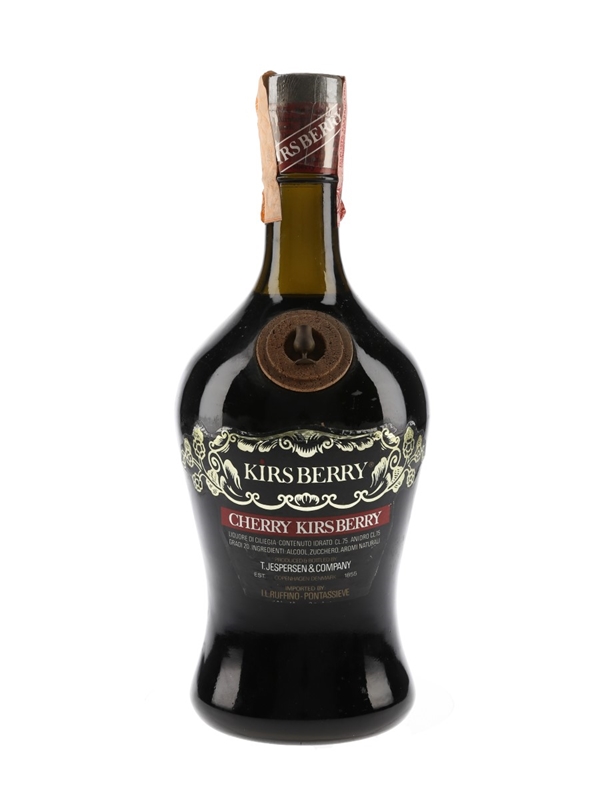 A bottle of Kirsberry cherry liqueur produced in Denmark by Jespersen & Company and imported to Italy by Ruffino. We estimate this was bottled in the 1970s to 1980s.