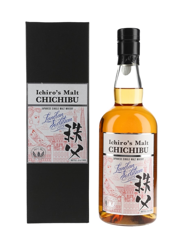 A bottle of Ichiro's Malt Chichibu London Edition 2019 Japanese Single Malt Whisky. This was bottled at cask strength by Venture Whisky Ltd. and imported to the UK by Speciality Drinks.