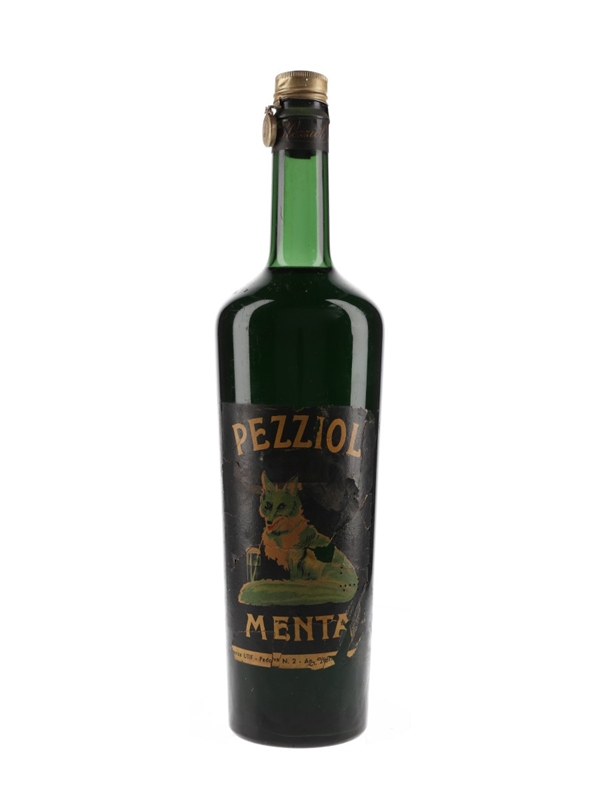 A litre bottle of Pezziol Menta, a mint liqueur produced in Italy. We estimate this was bottled in the 1950s.