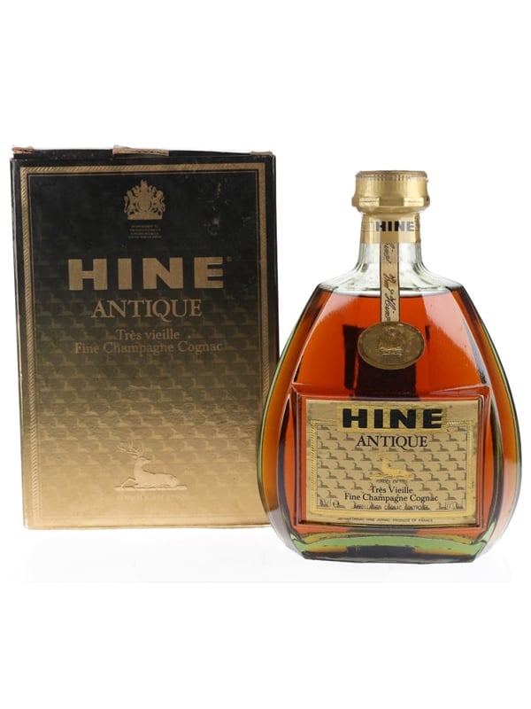 A bottle of Hine Antique Très Vieille Fine Champagne Cognac. We estimate this was bottled in the 1980s.