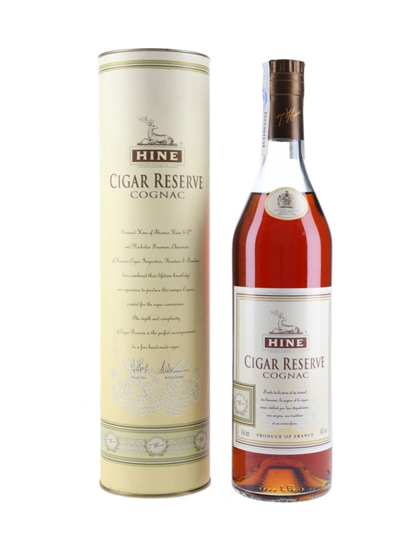 A bottle of Hine Cigar Reserve Cognac, specially released to accompany a fine cigar.