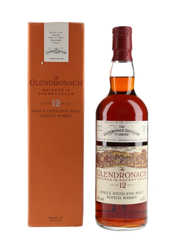 A bottle of The Glendronach 12 Year Old Single Highland Malt Scotch Whisky, matured in sherry casks. We estimate this was bottled in the 1980s.