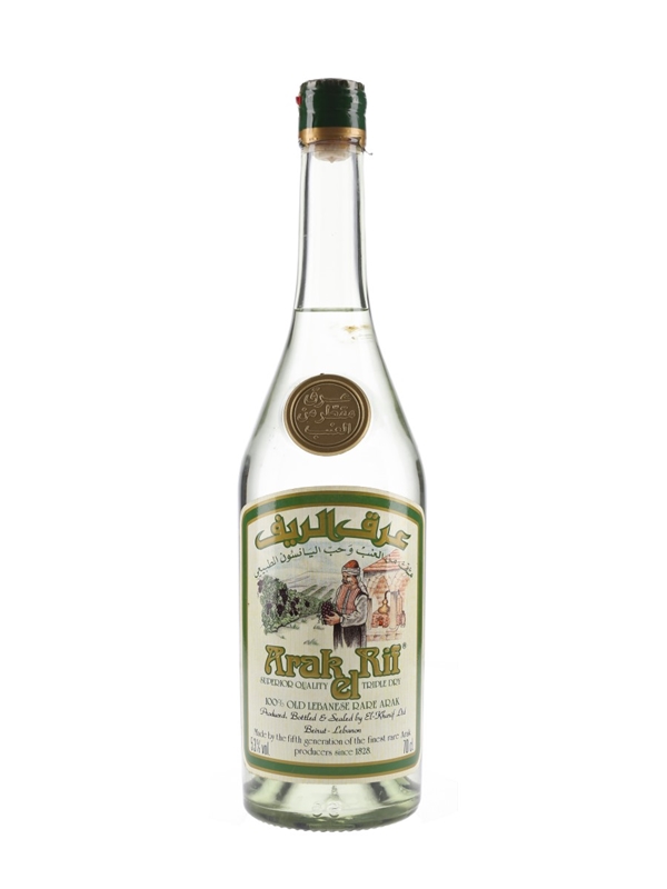 A bottle of Arak El Rif Green produced and bottled by El-Khauif Ltd in Lebanon. We estimate this was bottled in 1970s.