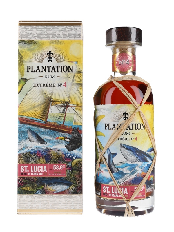 A bottle of Plantation 2007 13 Year Old St. Lucia Rum Extreme No.4. This was distilled in 2007 and matured for 11 years in a bourbon cask and two years in Ferrand casks before bottling at 58.9% ABV in 2020 by Maison Ferrand.
