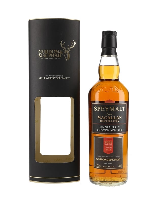 A bottle of Macallan Single Malt Scotch Whisky, distilled in 2005 and bottled in 2019 by Gordon & Macphail for the Speymalt series.