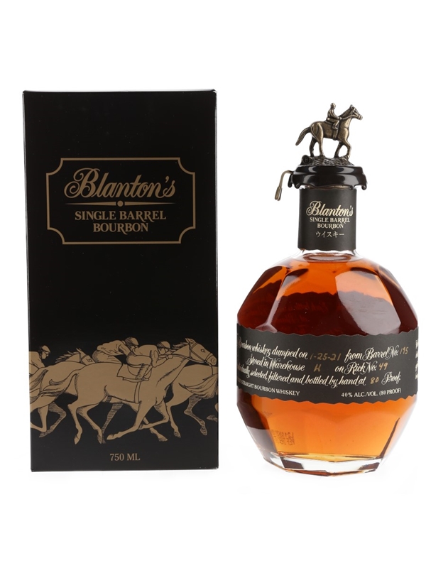 A bottle of Blanton's Single Barrel Kentucky Straight Bourbon Whiskey, bottled for the Japanese market.