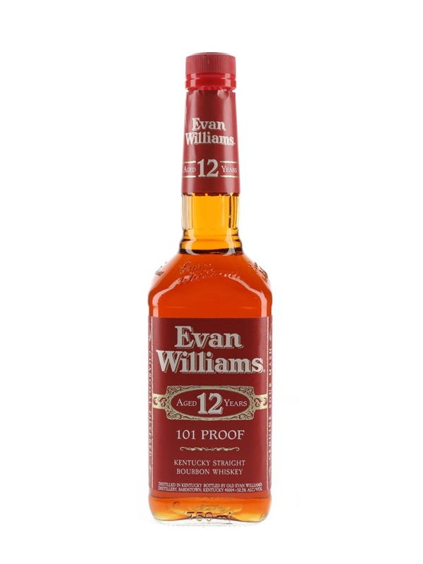 A bottle of Evan Williams 12 Year Old Kentucky straight bourbon whiskey, produced at Old Evan Williams Distillery, Bardstown. This was bottled for the Japanese market.