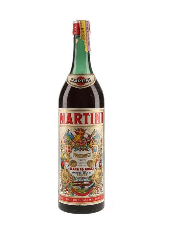 A litre bottle of Martini vermouth produced in Italy. We estimate this was bottled in the 1960s.