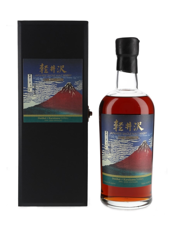 A bottle of Karuizawa from the 36 Views of Mount Fuji series. Each bottle in this series was produced from Karuizawa's final two vintages, 1999 and 2000, and are bottled at cask strength.