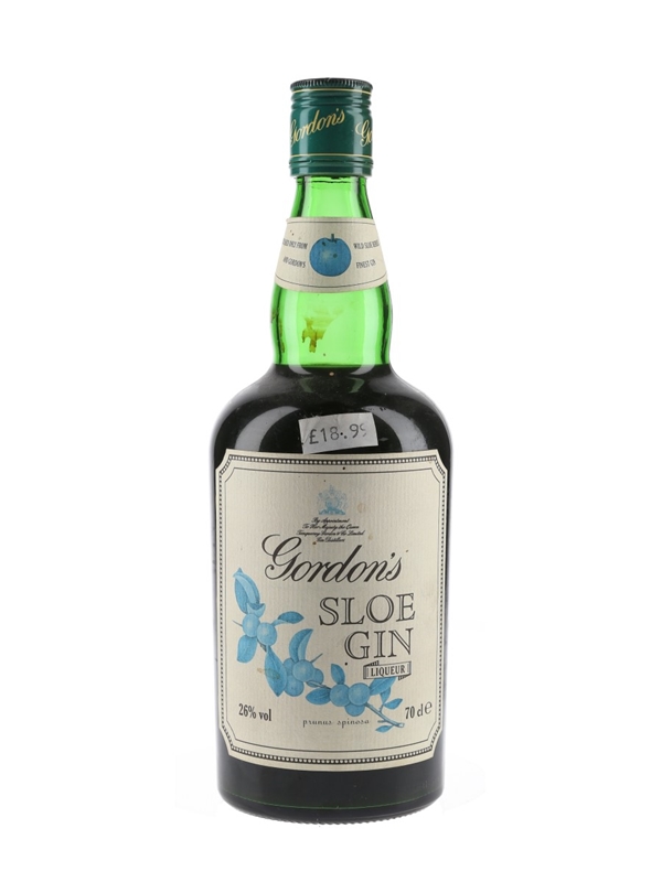 An old presentation bottle of Gordon's Sloe Gin made of wild sloe berries.