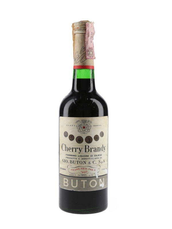A bottle of Buton Cherry Brandy, winner of the Grand Prix in Paris in 1900. We estimate this was bottled in the 1960s.