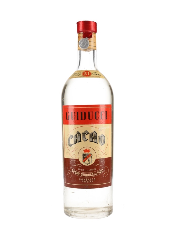 A bottle of Guiducci Cacao liqueur from Tuscany, produced by Russo Guiducci & Figli. We estimate this was bottled in the 1950s.