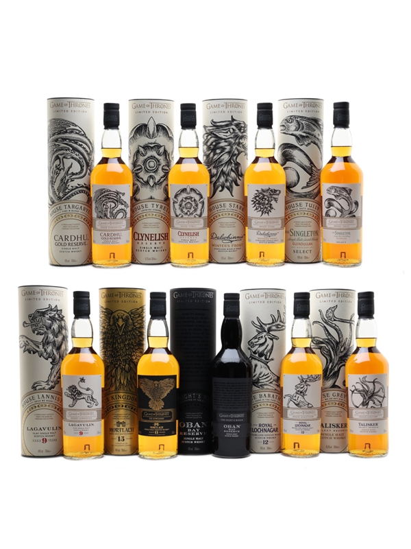 Game Of Thrones Whiskies Set Cardhu, Clynelish, Dalwhinnie, Glendullan, Lagavulin, Mortlach, Oban, Royal Lochnagar & Talisker 9 x 70cl