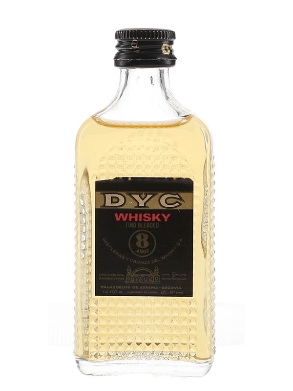 A miniature bottle of DYC 8 Year Old blended whisky produced in Spain at Distillerias Y Crianza Del Whisky S.A. We estimate these were bottled in the 1980s.