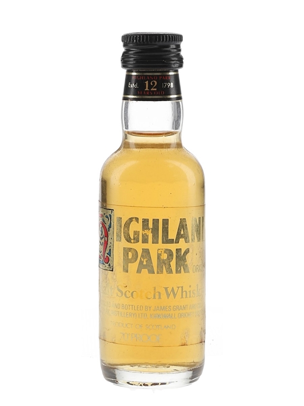 A miniature bottle of Highland Park 12 Year Old Malt Scotch Whisky. We estimate this was bottled in the 1970s.