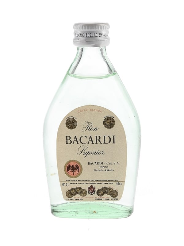 A miniature bottle of Bacardi Superior rum. This was produced and bottled in Spain, we estimate in the 1970s.