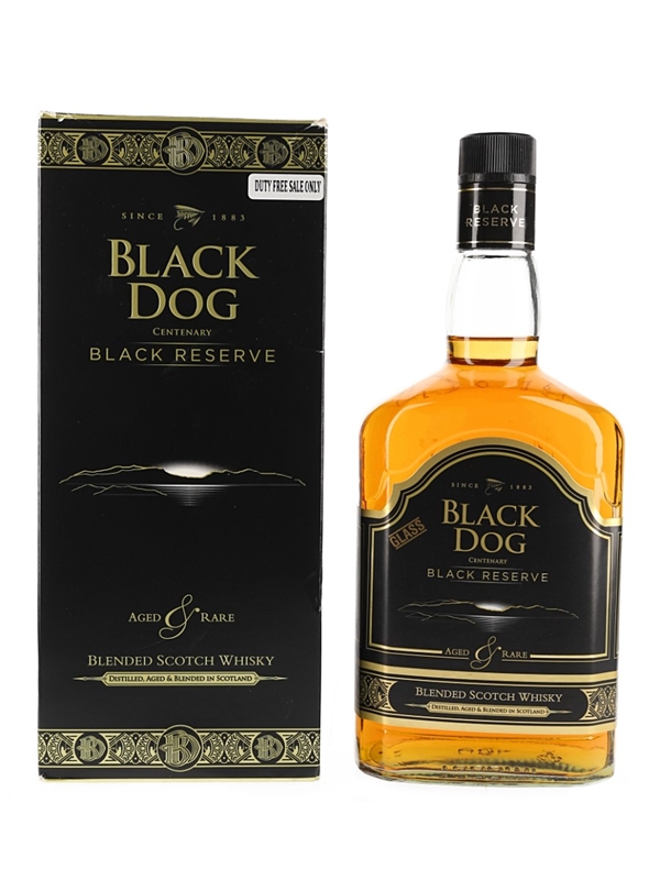 A litre bottle of Black Dog Black Reserve blended Scotch whisky, bottled for the Duty Free market.
