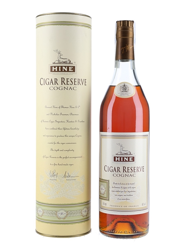A bottle of Hine Cigar Reserve Cognac, specially released to accompany a fine cigar.