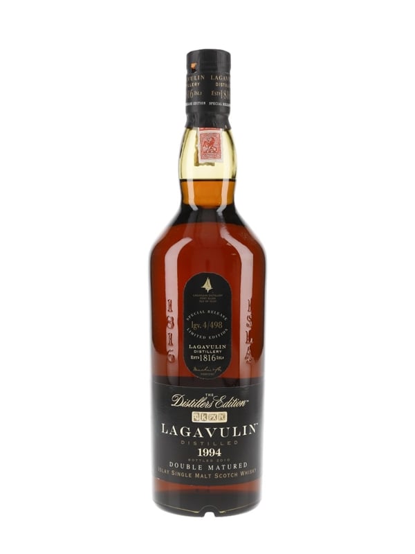 A bottle of Lagavulin 1994 Islay Single Malt Scotch Whisky. This was distilled in 1994, finished in ex-Pedro Ximenez sherry casks and bottled in 2010 for the Distillers Edition series.