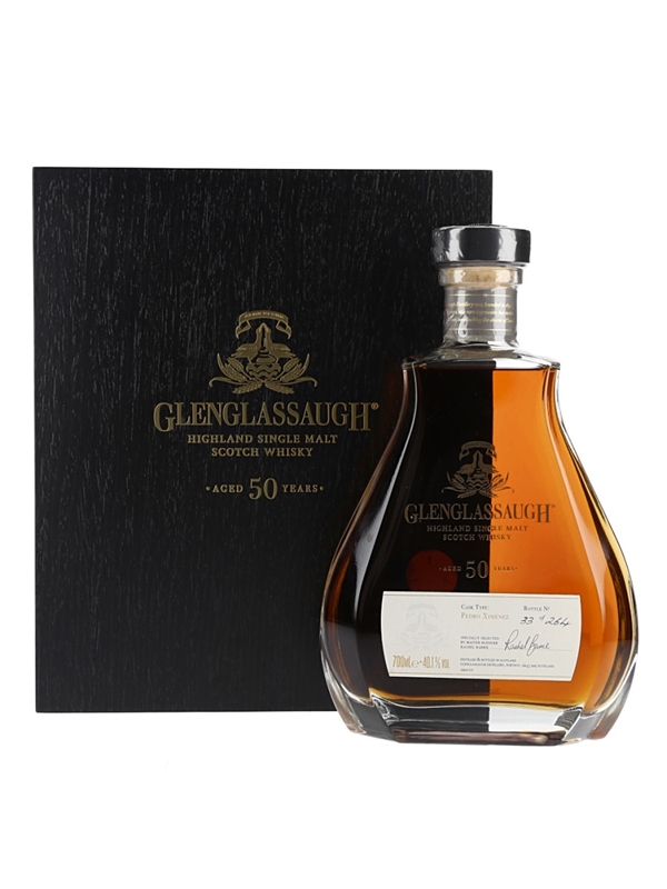 A bottle of Glenglassaugh 50 Year Old, matured in a Pedro Ximenez cask and bottled in 2021.