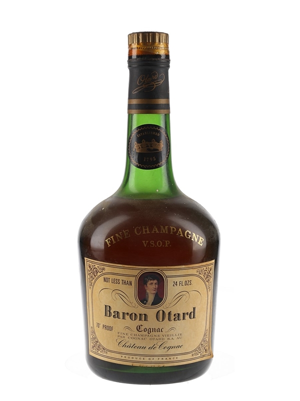 A bottle of Baron Otard VSOP Fine Champagne Cognac. We estimate this was bottled in the 1970s.