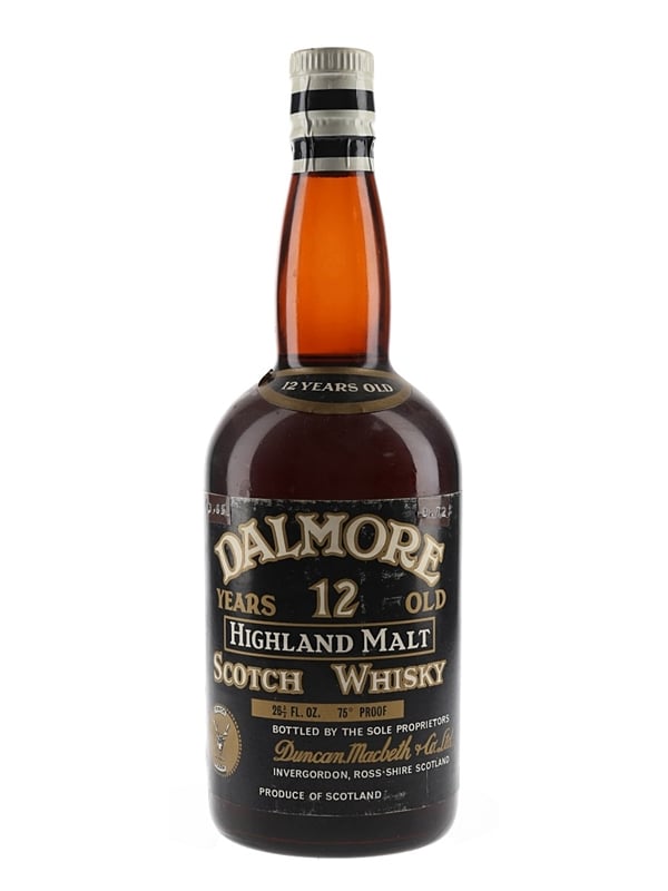 A bottle of Dalmore 12 year old Highland Single Malt Scotch Whisky, bottled by Duncan MacBeth & Co. We estimate this was bottled in the early 1970s.