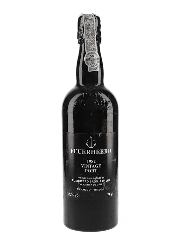 A bottle of Feuerheerd 1982 Vintage Port from Portugal, from an extremely hot, early-picked vintage, which was declared by only a small number of shippers.