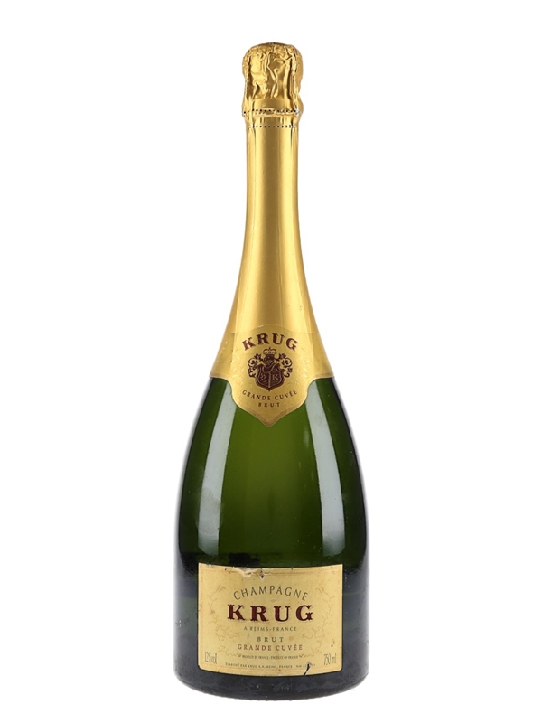 A bottle of Krug Grande Cuvée Champagne.
