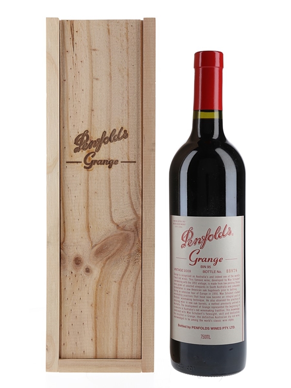 A bottle of Penfolds 2009 Grange Bin 95 from South Australia, matured for 18 months in American oak hogsheads.