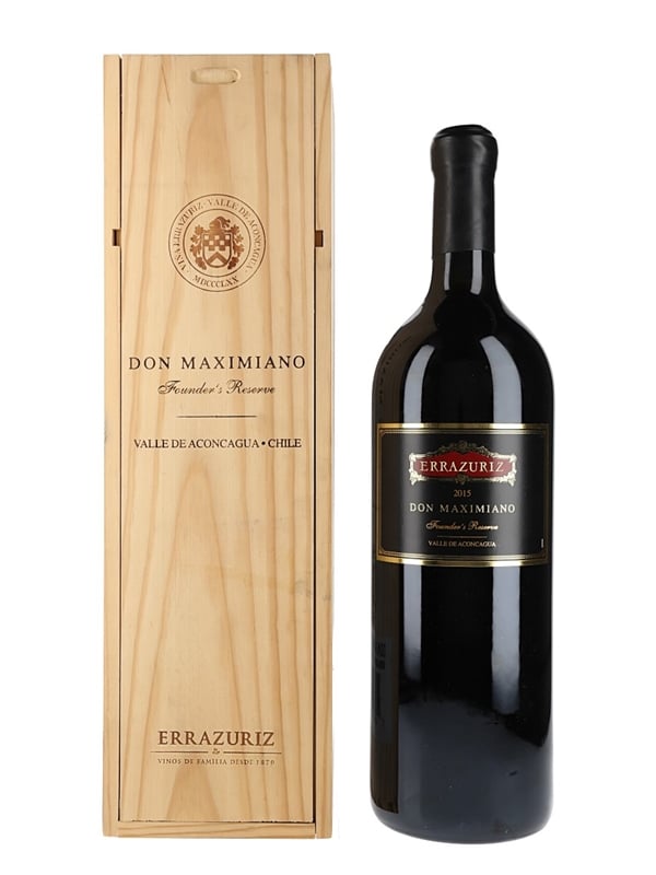 A double magnum of Errazuriz 2015 Don Maximiano Founder's Reserve from Valle de Aconcagua, Chile, a blend of Cabernet Sauvignon supported by 15% Carménère, 8% Malbec, 7% Petit Verdot and 3% Cabernet Franc, matured for 22 months in French oak barrels.