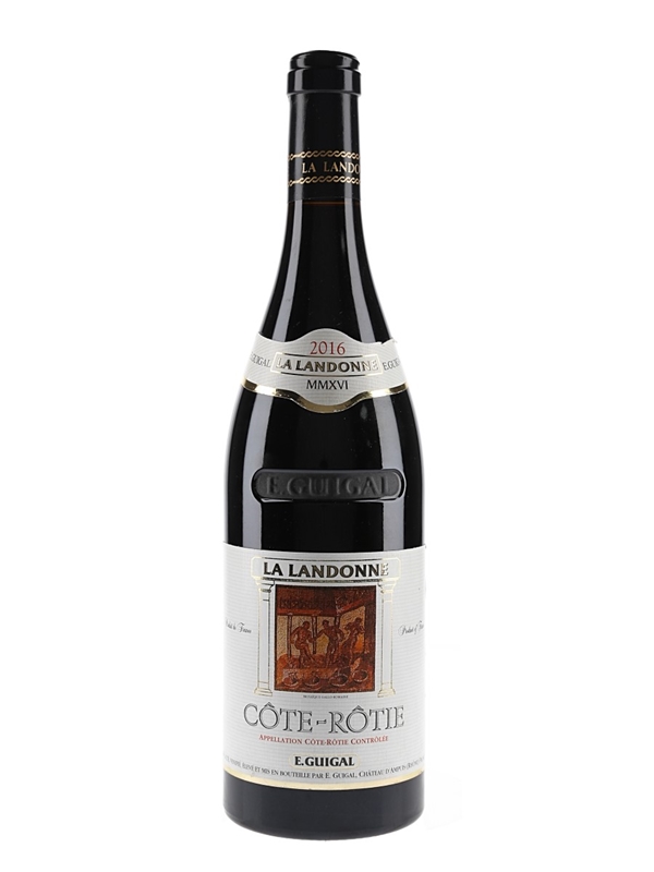 A bottle of Guigal Côte Rôtie 2016 La Landonne, harvested from one of France's steepest vineyard sites.