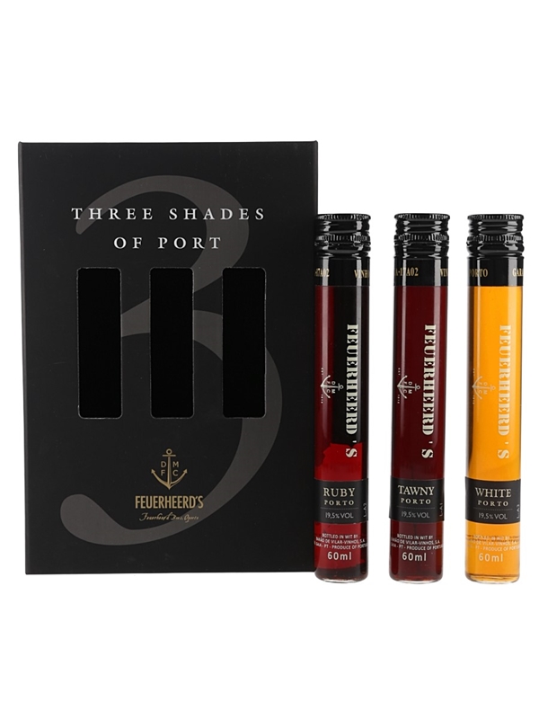 Feuerheerd's Three Shades of Port includes three 6cl bottles of Ruby, Tawny and White port.